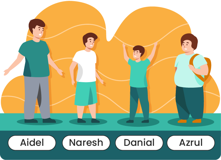 Arrange the three students above from the tallest to the shortest.
