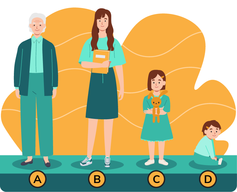 The diagram below shows human growth from a baby until become older.