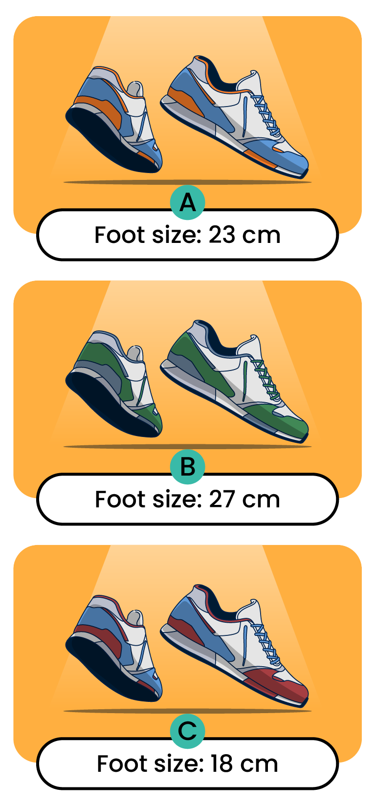 The three shoes belong to three students of the same age.